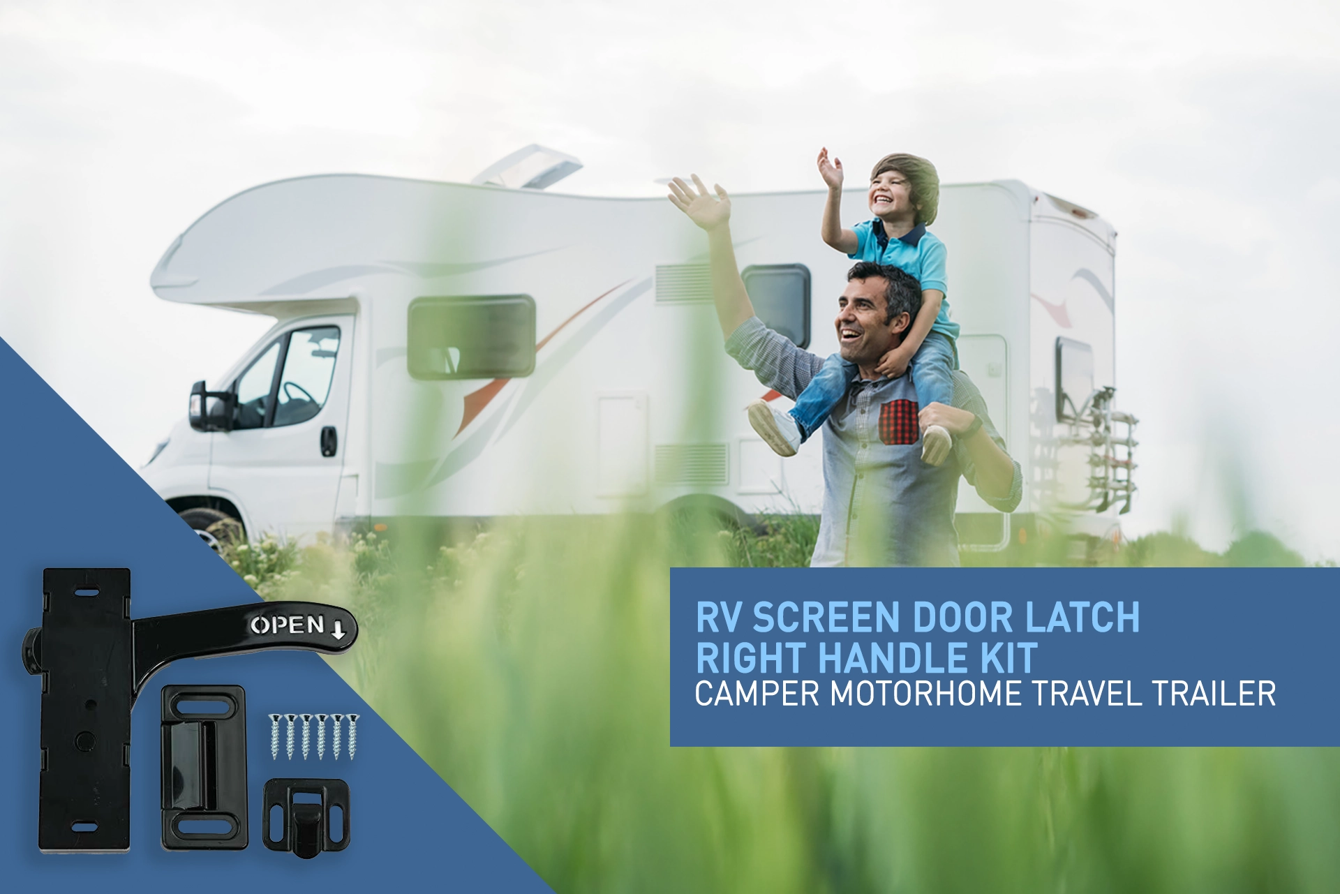Here’s the good stuff: the Right-Hand Handle Kit comes with everything you need for a quick and easy installation: you get the latch, screws, and mounting holes that are spaced 3 inches apart, which should fit most standard RV screen doors.